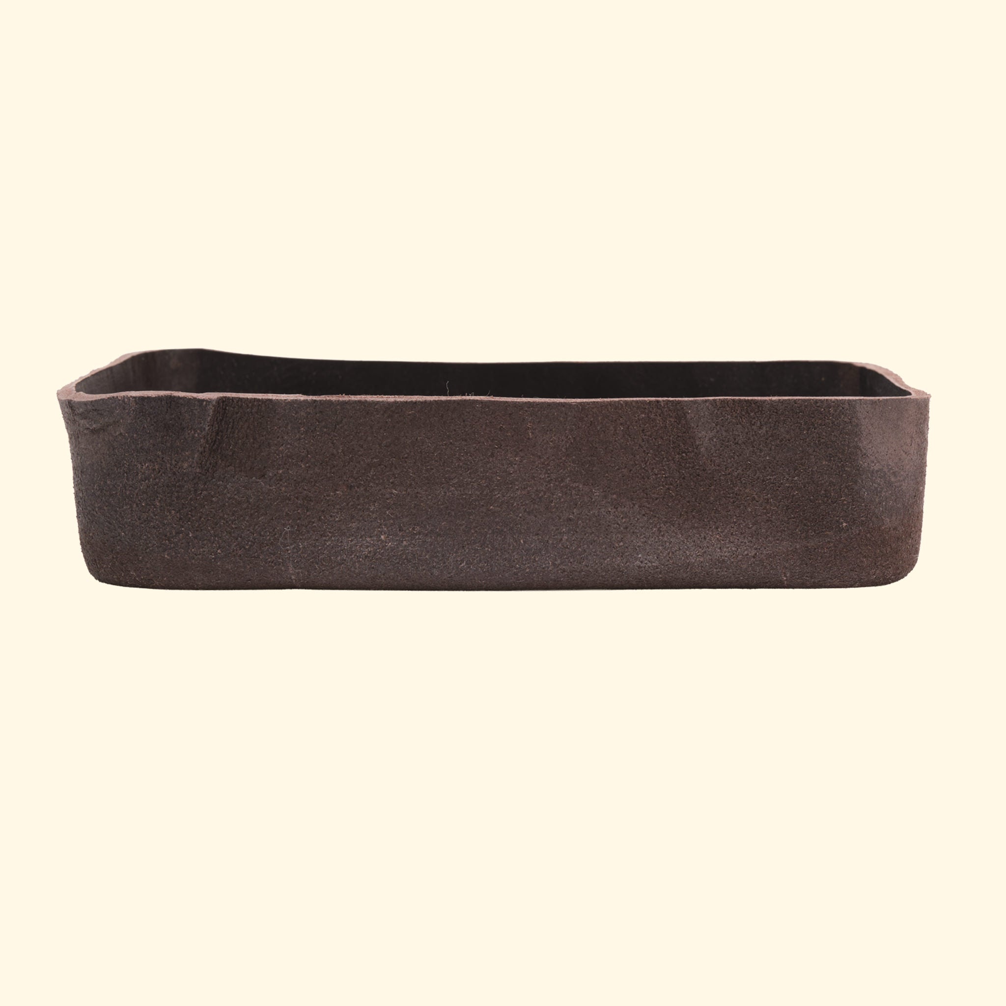 Durch und durch unique: Für den Sleek Tray nutzen wir eine eigens entwickelte Herstellungsmethode mit selbstgemachter Pressfassung, die dem Leder seine Form verleiht.